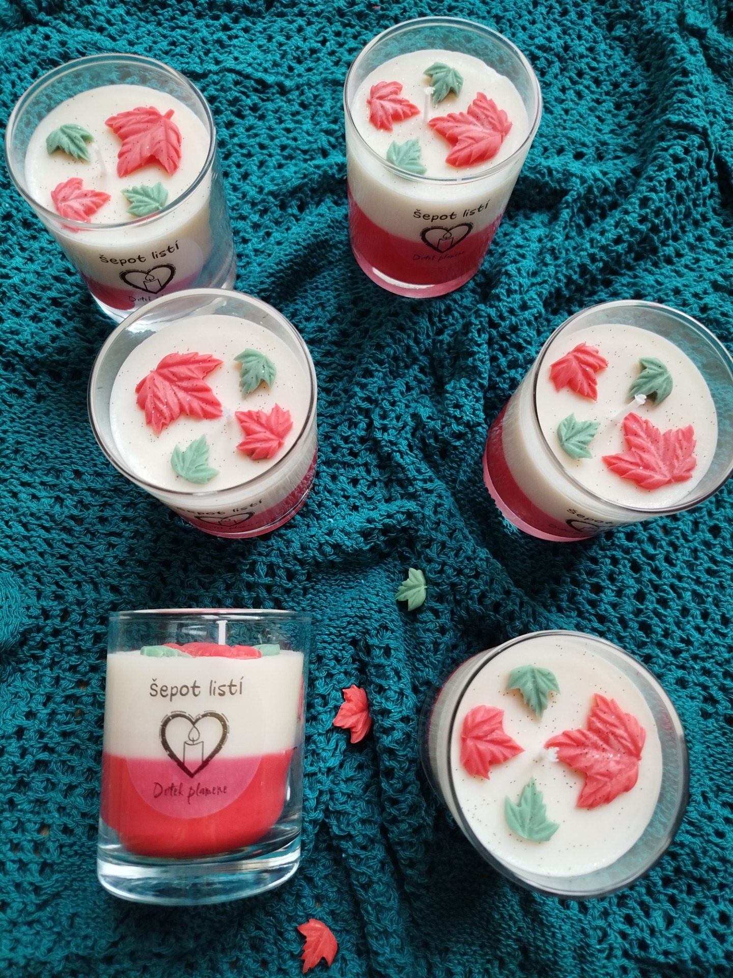 Svíčky Dotek plamene jsou ručně vyráběné z přírodního sójového a kokosového vosku s příměsí přírodních barviv a vonných olejů.